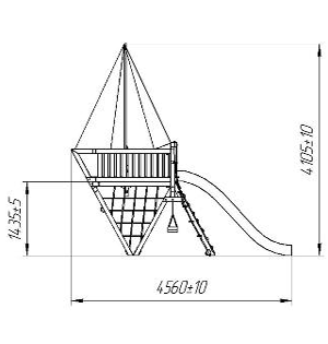 Габариты площадки: внешние размеры 4,6м х 3,6м; высота 4,2м; длина горки 3м. высота палубы 1,5м; высота палубы с бортом 2,2м;